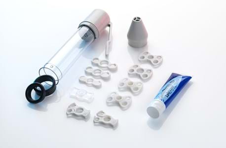 One-piece manually operated device with Large (L) cylinder sizing option. 3 Sizes low tension 'Select' Rings, 4 Sizes low tension easy removal 'SureEase' practice rings, 2 cushioned inserts, 2 Sizes 'SureRelease' rings, lubricant, instruction DVD and guide-book (ED only). Traditional ring loading cone. Travel bag and life-time warranty when purchased privately. 100% refund option within 90 days.